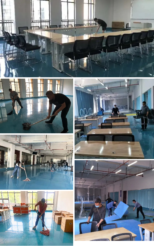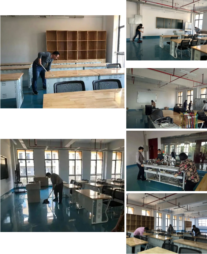 劳动是人类的本质活动,老师们身体力行,以劳树德、以劳育美、以劳筑心,经过2天的努力,使得北院精工楼B栋实训室焕然一新,为学生按期有序复学,推进教学工作的顺利开展,提供了保障。