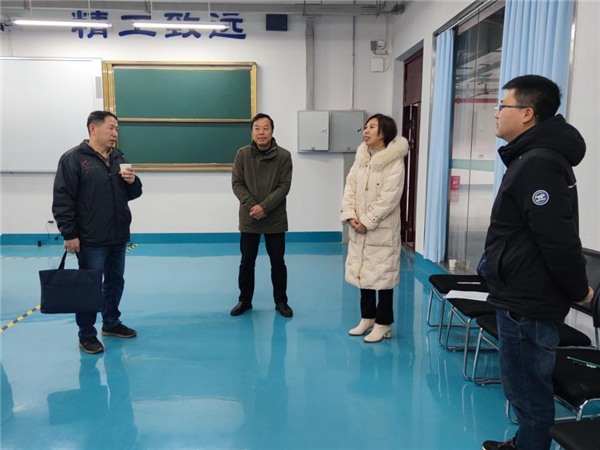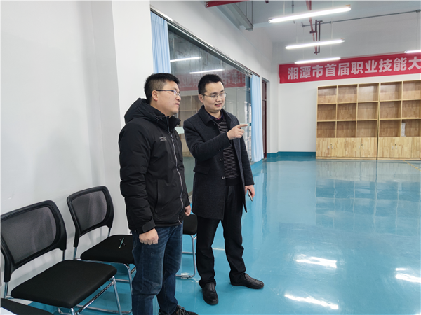 2022年2月25日上午,湘潭市总工会党组副书记、副主席、机关党委书记刘岸鸿、四级调研员邹谦、劳动和经济服务部部长赵正凯一行莅临我院就湖南省第一届职业技能大赛--工业机器人应用技术赛项湘潭市选拔赛集训工作进行了调研和指导。