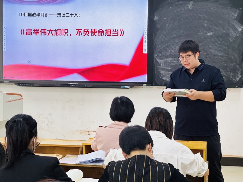 党总支副书记、副院长赵奇:一要认真学习会议内容,打牢思想基础。在深入学习上求“精”,在理论研究上求“实”,在学用结合上求“广”,按照二十大会议的要求,树立正确的事业观、工作观和正气观,进一步创新思政教育工作思路。二要正确理解精神实质,改进提升工作。要牢牢把握习近平新时代中国特色社会主义思想的历史地位、科学体系、精神实质、实践要求,结合实际将自己的本职工作精细化,切实将这一思想贯彻落实到学生工作的全过程和各方面。三要努力加强自身建设,发扬工作作风。要以身作则,以上带下,发扬求真务实、团结奋进的作风;要心系学校、关心学生,发扬励精图治、开拓进取的作风;更要廉洁自律,淡泊名利,发扬艰苦奋斗、无私奉献的作风。