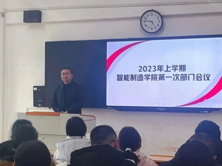 新学年,新起点,新目标,新征程,为更好地统筹谋划新学年各项工作,进一步提升教书育人质量,精心谋划开局新篇,2023年2月14日下午,智能制造学院召开新学期第一次部门工作会议。校长李科、党政办主任黄永录出席会议,智能制造学院全体教职员工参加会议。会议由智能制造学院党总支书记、院长何瑛主持。