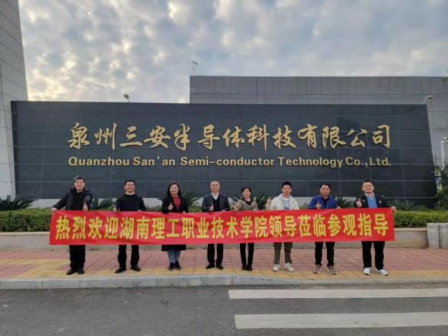 随后,一行6人又驱车前往60公里以外的泉州三安半导体科技公司探望我校毕业生代表。
