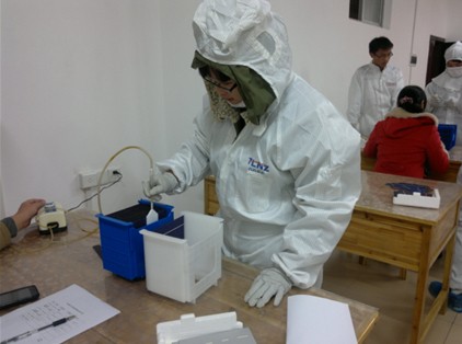 光伏类专业的光伏插片比赛由光伏教研室组织。通过竞赛,同学们按行业标准全面掌握了太阳能电池生产车间的工艺,训练了技能,提高了就业筹码。