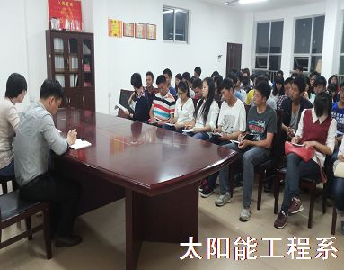 4月15日晚7点30分,为了深入开展党的群众路线主题教育,提高学生党员的先进性,太阳能工程系召开以“树党员形象,扬青春风采”为主题的学生党员大会。系党总支副书记田野、辅导员林丽群,系部全体学生党员以及入党积极分子参加了此次会议。
