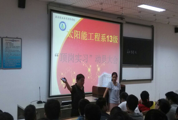 为践行光伏发电技术及应用专业实践教学计划要求,6月9日晚,太阳能工程系在三教410教室召开13级光伏发电技术及应用专业实习动员大会,太阳能工程系党总支书记、主任黄建华老师、副主任向钠老师、班主任、辅导员出席此次会议。