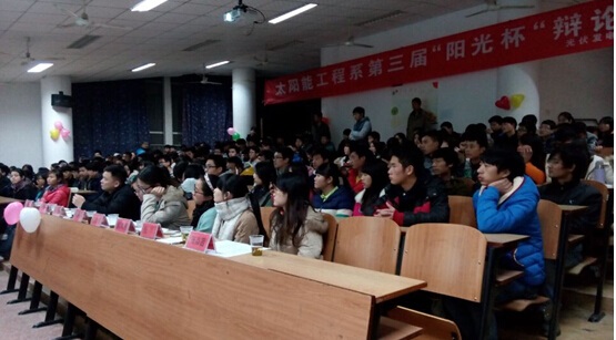 2014年12月18日晚上7:30,太阳能工程系第三届“阳光杯”辩论赛决赛在三教410教室顺利举行,此次辩论赛的主题是“电脑会取代书本还是电脑不会取代书本”。担任此次辩论赛的嘉宾和评委有太阳能工程系党总支书记、主任黄建华老师、太阳能工程系党总支副书记田野老师、太阳能工程系副主任向钠老师,全体辅导员也全程观看了比赛。