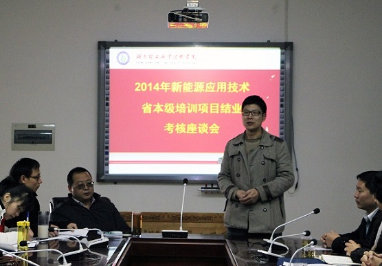 12月19日上午,湖南省本级新能源应用技术培训班结业座谈会在学院图书馆一会议室召开,省教育厅教师工作与师范教育处处长张大伟、调研员蒋维加、学院院长罗先进、副院长黄霞春、教务处处长刘炳良、太阳能工程系主任黄建华及全体培训班学员参加会议。