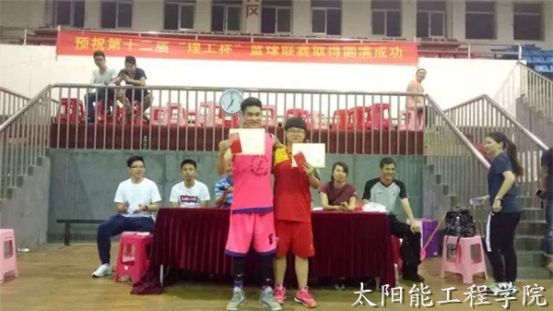 本次比赛是太阳能工程学院与管理工程学院、风能工程学院、五年制大专部这几支队伍的同场竞技。随着哨声的响起,双方队员迅速进入状态,展开了你争我夺、你攻我守,异常激烈的角逐,使气氛立刻紧张起来。裁判员秉公执法,严肃认真,尽自己最大的努力判决好每一个球,保证比赛的公证性、连续性和观赏性。发球、运球、传球、断球、拼抢,让我们目睹了运动员的风采,使篮球赛格外绚丽多彩!同时,各方的啦啦队员在一旁呐喊助威,使球场的气氛更加活跃起来。最后,太阳能工程学院在队长的带领下以优越成绩赢得了此次比赛的最终胜利,获得男女双料冠军,田小周和刘宇宣同学更是获得了优秀球员称号。