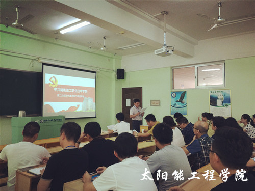 根据《中共湖南理工职业技术学院委员会关于湖南理工职业技术学院第二次党员代表大会代表选举工作的通知》文件精神,经过党员代表大会选举工作的部署和动员,太阳能工程学院党总支于7月11日14:30在三教408教室召开了湖南理工职业技术学院第二次党员代表选举会。参加本次会议的有湖南理工职业技术学院校长杨爱云同志,副校长朱奇卫同志,纪委委员谭境佳同志,太阳能工程学院党总支书记黄建华同志,副书记李强同志以及太阳能工程学院全体教师党员。会议由黄建华同志主持。