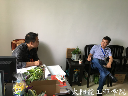 2017年8月31日下午,学校洪丕庆副校长来到太阳能工程学院了解新学期工作安排,太阳能工程学院党总支副书记李强对本学期的老生报道、新生接待等工作安排进行了汇报。洪副校长在了解学生返校情况后,对本学期辅导员值班、教学秩序和到课率等方面提出了新的要求,希望太阳能工程学院继续加强学生管理,重视安全稳定,抓好学风建设。(文/张焱茜)