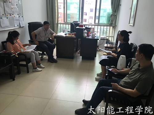 期间,发展规划处罗美霞处长就示范性特色专业群建设的经费支出、任务分解等具体问题与太阳能工程学院黄建华院长、向钠副院长进行了探讨,黄建华院长表示,在特色专业群的建设上经费支出会严格按照财务制度进行,将每一笔支出落到实处,各项任务落实到责任人,并且要建设有亮点、有特色的课程。此外,罗处长强调要重视“月报告”,及时反馈工作进行情况,在重点工程实验室方面加强项目宣传。