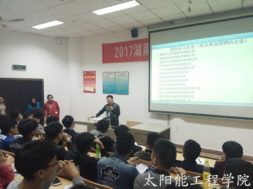 2017年11月2日晚,在明理楼110教室召开了我院2015级光伏专业顶岗实习动员大会。太阳能工程学院院长黄建华老师,副院长向钠老师、唐洪江老师,辅导员黄静老师、以及光伏专业所有任课老师参加本次大会。大会由向钠副院长担任主持人。