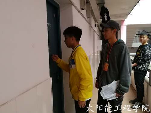 2017年11月10日中午,为加强学生日常管理、维护校园秩序,营造一个平安、文明、和谐、整洁的生活环境。太阳能工程学院团总支学生会全体部门负责人在学生会主席团成员的带领下,前往我院宿舍楼检查大一到大三全体学生寝室,检查卫生和使用大功率违规电器的情况。