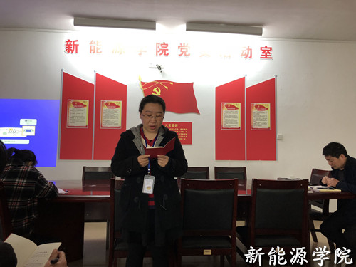 3月13日下午2:30,新能源学院组织全体党员教师进行政治学习。专题学习了《中国共产党章程总纲》以及《中国共产党第十九届中央委员会第二次全体会议公报》。