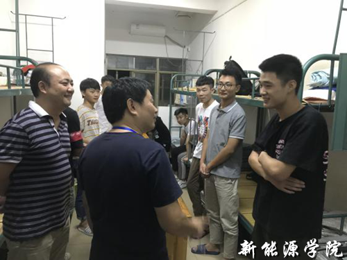9月9日深夜,第34个教师节来临之际,新能源学院黄建华院长与唐洪江副书记带领2018级辅导员、班主任老师深入学生寝室,与新生面对面交流。