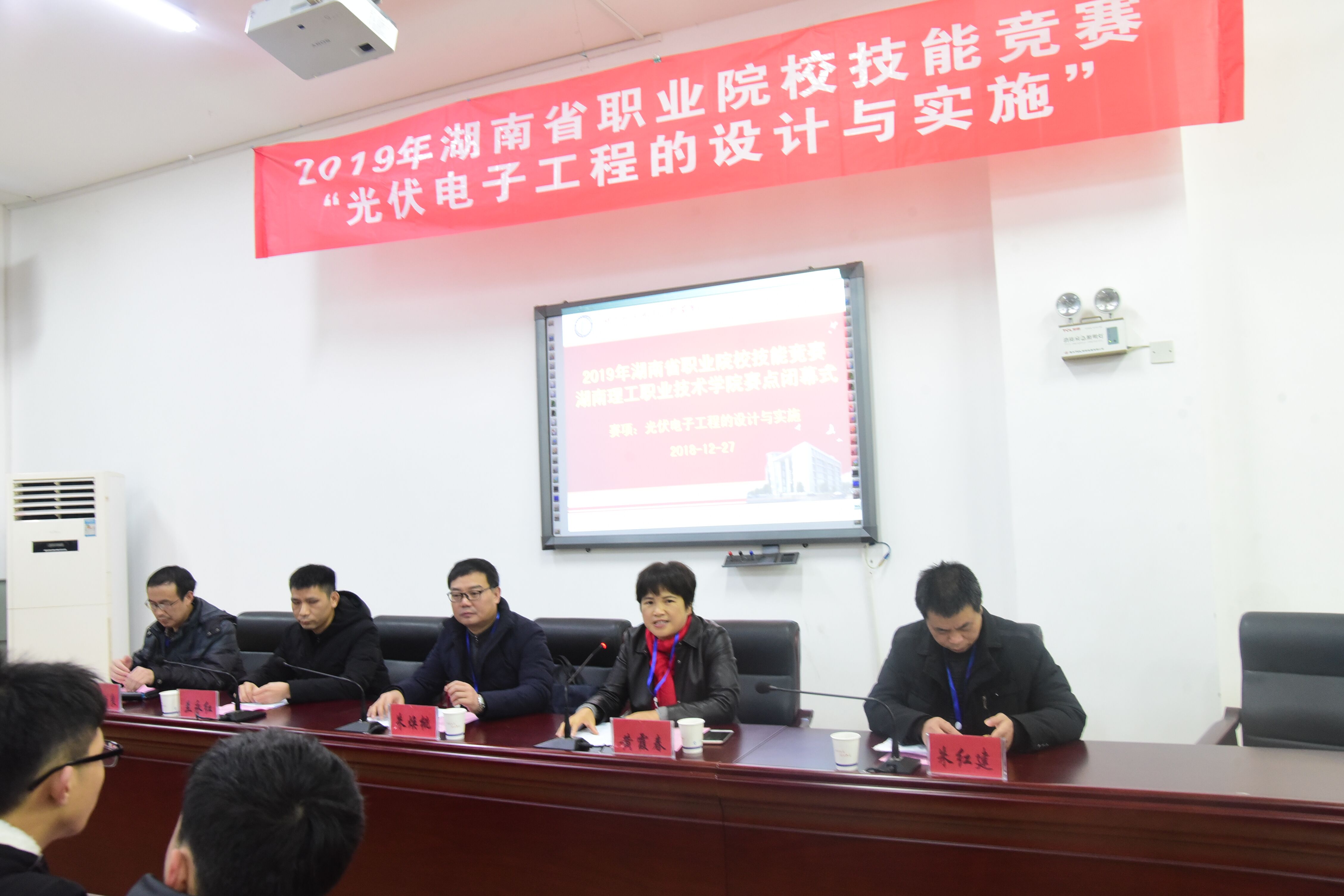 由湖南省省教育厅、湖南省人力资源和社会保障厅、湖南省发展和改革委员会主办的2019年湖南省职业院校技能竞赛“光伏电子工程的设计与实施”赛项于2018年12月27日在我校落下帷幕,来自7所院校12支队伍经过紧张而又激烈的角逐,赛出了风格、赛出了水平。