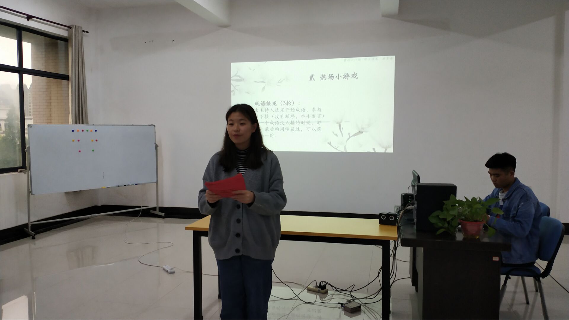 本次分享会分为三个环节,游戏环节、领读环节和颁奖环节。大会开始,由一场有趣的“成语接龙”小游戏展开,游戏中同学们的激情澎湃可谓是为分享会开了一个好头。此次分享会的主题是杨绛的《我们仨》,主持人对该书进行了简要叙述,随后,胡超艺、兰宇涛、杨冰洁、李清泉、高海燕五位领读人开始了他们的领读故事并分享了自己的阅读感悟,紧接着余银萍老师深刻的向我们提出了她对《我们仨》的见解。