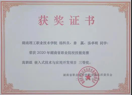 “嵌入式技术与应用开发项目”团体三等奖