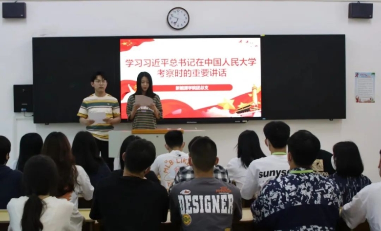 5月3日下午,新能源学院团总支学生组织于明理楼308召开大学生骨干学习座谈会。深入学习习近平总书记在中国人民大学考察时的重要讲话精神。 张迎春、陈玛丽领学。
