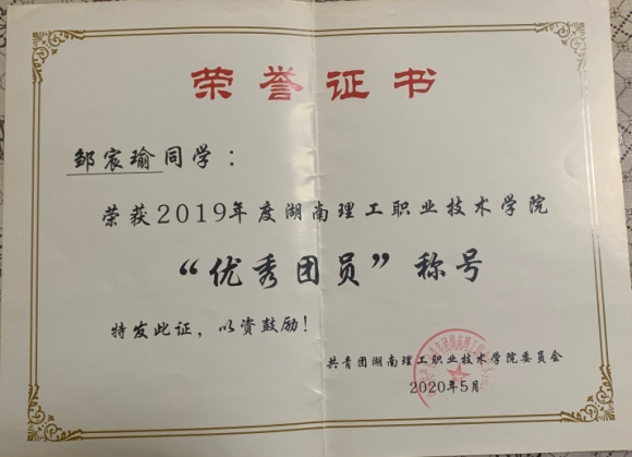 全面发展,争当逆行者。邹宸瑜始终严格要求自己、坚持不懈、努力奋斗,面对思想、学习、工作以及平时生活遇到的种种困难,都能迎难而上,不肯退缩。期间还参加了湖南理工职业技术学院青年马克思主义者培训班,顺利结业。此外,他积极参与各类团日活动以及学院开办的党员分享会,坚持用科学理论武装头脑,以求真务实的态度面对遇到的每件事,努力成为德智体美劳全面发展的理工学子。2022年2月由于疫情复发,作为党员的他,义无反顾积极投入到家乡火车站疫情防控执勤任务当中,为社会奉献自己的一份微薄之力。