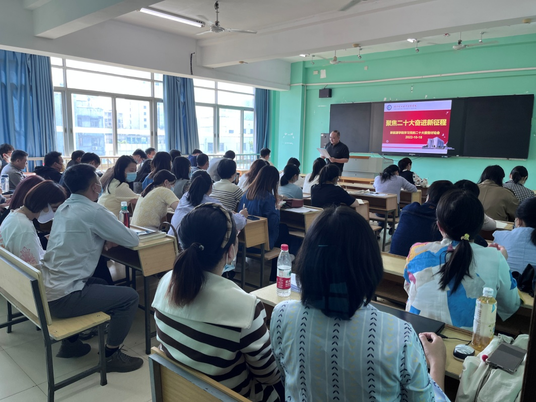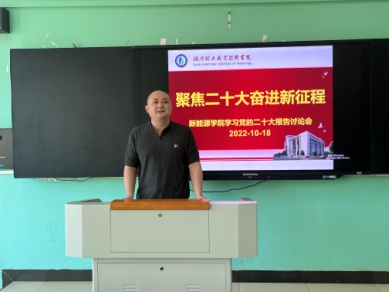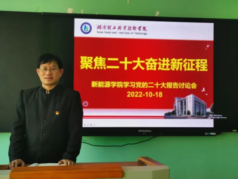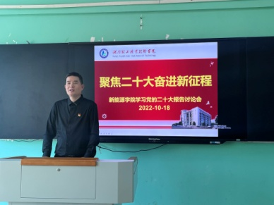 2022年10月18日下午,新能源学院组织全体教职工召开了以“聚焦二十大·奋进新征程”为主题的党的二十大报告专题学习讨论会。学院党总支副书记唐洪江领学了习近平总书记的中国共产党第二十次全国代表大会报告。通过集中学习,大家深刻领会报告精神,并开展了热烈讨论。