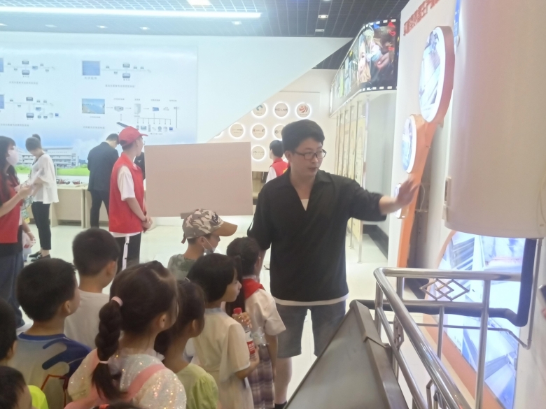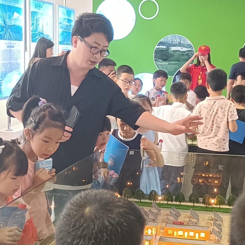 在新能源大楼风光互补实验室,滕东老师从新能源概念引入,询问同学们什么是新能源、使用新能源的好处有哪些,小朋友们积极回答。接下来老师和志愿者又给大家演示了光伏发电和风力发电的全过程,让小朋友们了解“绿电”的来源,对新能源建立了初步的认知,感受着科技的魅力。