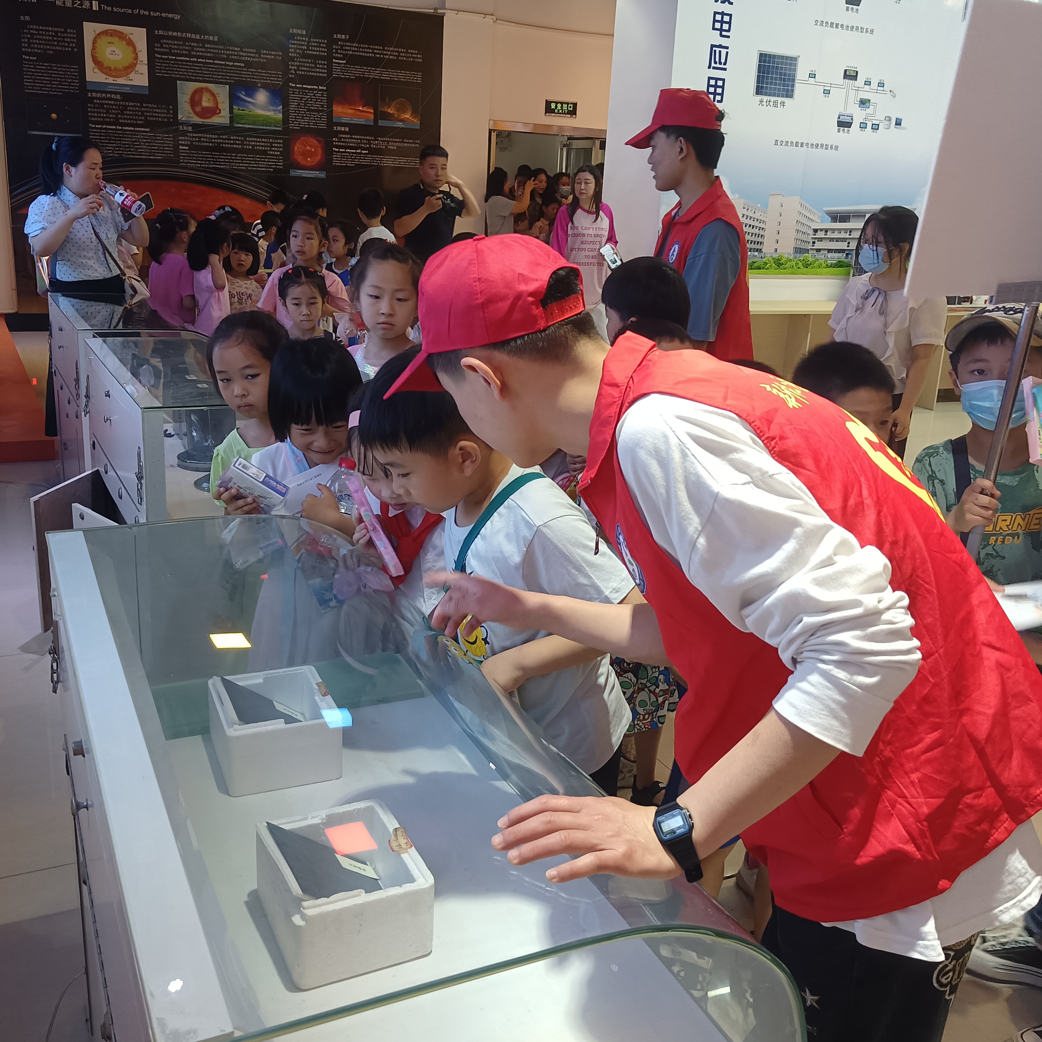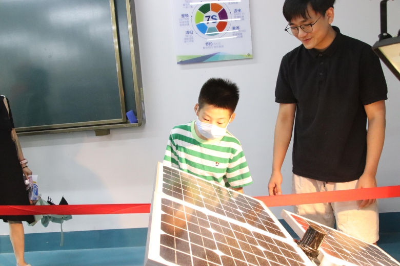 我校太阳能科技馆是湖南省内首家光伏类科技展馆和省级科普基地。走进馆内,小朋友们被电池片生产流程、光伏建筑一体化发电系统模型、大型光伏并网电站沙盘模型等科技馆的各项设施所深深吸引,纷纷提出疑问,“太阳为什么会发电”、“这个电池和我们见过的不一样”……讲解员的耐心解说充分满足了小朋友们对新能源技术的好奇心。