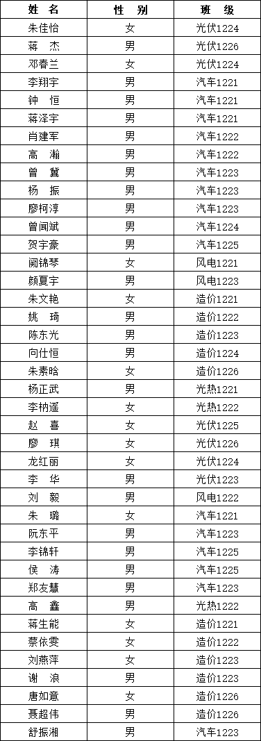 湖南理工职业技术学院2025届优秀毕业生拟推荐人选