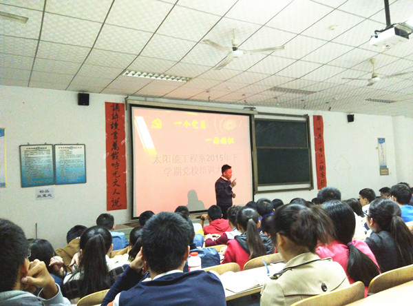 2015年11月4日晚上19:30,新能源系在三教410举办了第十期分党校培训第二课--《积极创造入党条件》,本次培训由系党总支副书记田野老师主讲。