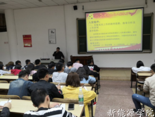 4月16日晚上,新能源学院分党校在明理楼510教室开展第15期入党积极分子党校培训。此次培训由新能源学院党总支书记黄建华主讲,学院110名入党积极分子参加,学生党支部第一书记刘堃主持。