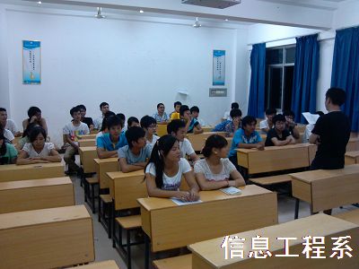 (通讯员 戴科)为了进一步贯彻落实班主任制度,让班主任更加熟悉班级情况,同时也让学生们认识了解班主任,信息工程系全体辅导员、班主任于2012年9月4日晚上7点30分,在3教组织各个班级学生召开班会。图为造价1113班班主任召开班会。