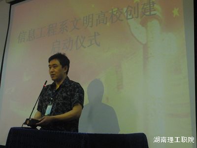 最后,党总支副书记杨海斌指出,创建文明校园的过程,是创建先进校园文化氛围的过程,创建工作,人人都是主角,需要全院师生的共同努力。他希望全体师生积极参与,从我做起,把我系创建文明校园工作抓实抓好,进一步促进学院的发展。