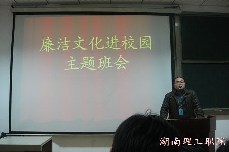 2010年10月30日晚上七点半,新能源学院在三教多媒体三教室召开了09级电子专业期中总结暨廉洁文化进校园主题班会。会议由辅导员罗湘老师主持,09级电子专业3个班130余名同学参加了会议。