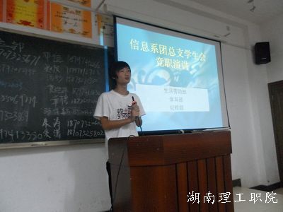 选手们按照部门顺序,依次进行了竞职演说。他们精彩的演说和务实的态度赢得了观众的阵阵掌声。从他们身上我们看到了一个全新的、充满活力的学生会团体应具有的素质,就像一位选手所说的“工作是做出来的,不是说出来的”,我们从他们坚定的声音中听到了一个服务同学、锻造自我的学生会团体的基本宗旨。