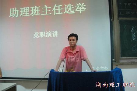 为选拔2010级新生班级的助理班主任,6月10日晚7:30,新能源学院在三教多媒体三教室举办了选拔中最重要的一项考核——助理班主任竞职演讲。本次竞职演讲由院学生会副主席易笑美同学主持,院团总支学生会主席团所有成员担任评委,辅导员范海军老师、马云老师和田野老师出席了本次竞职演讲。