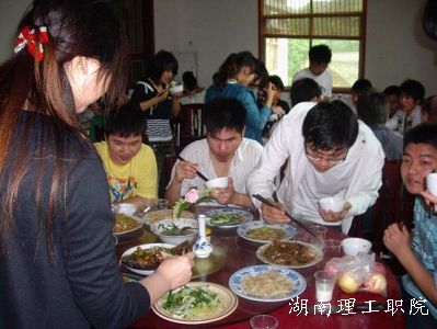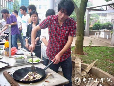 很快同学们都迫不及待的开始了今天的重头戏---大展厨艺,全班共分为五组,各组自己准备原材料,以组为单位做菜。各组都在不停的忙活,洗菜、切菜、炒菜……其乐融融,几个小时过去了,丰盛的午餐摆在了大家的面前,各组各有特色,各有所长。等各组都做好了准备,便开始了午餐,大家都吃的津津有味,而且各组之间进行了厨艺交流与平常,有颇有特色的新疆大盘鸡,也有浏阳蒸菜……大家对几个做菜的同学的厨艺赞不绝口,午餐在大家的赞叹声中结束了。