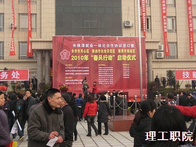 2010年3月9日,湘潭市人事局、湘潭市劳动局在湘潭市岳塘区荷塘乡政府大院内联合举办了“长株潭‘两型社会’企业联合招聘人才交流会”,邀请了200余家长株潭两型社会试验区国有大中型企业、高新技术企业、民营企业、三资企业及高校、科研院所参加。为进一步拓宽毕业生就业渠道,努力实现充分就业,我院就业专干老师带领70余名应届毕业生参加了此次人才交流会。
