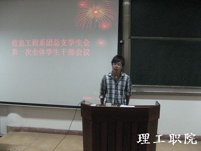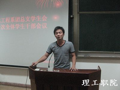 在会上,学生会主席刘东斌对迎新、红歌会、学生会纳新、篮球赛、早起签到等开学以来的各项工作作了综合性的回顾和总结,学生会各部门的部长也就各部门的职能和开学以来的工作作了汇报,田野老师、罗湘老师、杨海斌书记分别作了讲话。