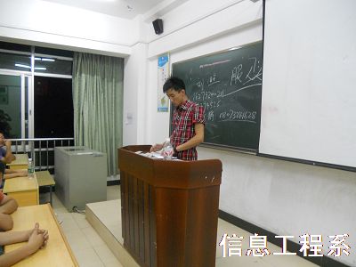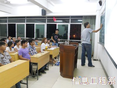 为了进一步加深新生对学校和老师的了解,促进同学们之间的友谊,2013年9月2日晚上7时,信息工程系在3教3楼4楼各教室举行新生班级第一次班会,辅导员、班主任、助班参加会议。图为各班级召开班会的现场。(信息系 雷蕾 戴科)