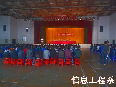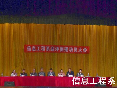 为了顺利迎接教育部第二轮人才培养评估工作,扎实有效地开展学院评估工作,2013年10月21日15时,信息系“迎评促建、真抓实干、打造信息工程系品牌形象”动员大会在食堂报告厅召开。学工保卫处处长宋乃冰、院团委书记罗美霞、教务处副处长刘炳良、信息系党总支书记田拥军、信息系党总支副书记张存彪、各专业带头人,以及全系师生出席了会议。