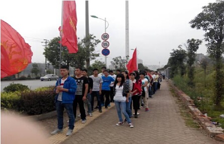 9月20日上午,“爱祖国、爱湘江、国旗接力”大型公益活动在湘潭城市之光广场举行,我系学生积极参加了此次志愿者活动。在庄严的唱国歌声中,数百名志愿者向国旗致敬,并共同倡议:同饮一江水,保护母亲河,为子孙留下一江碧水,还原美好绿色的生态;从每个社会公民身边做起,植树爱草,保护生态,低碳生活,建立人与自然和谐共存的环保家园。随后,国旗传递接力在沿江风光带举行。让我们通过这次活动,协心同力,保佑母亲之河,善待湘江,珍惜湘江,保护湘江,让湘江永葆青春。(图/张孝杰 文/高鑫 编辑/戴科)
