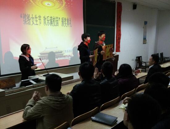 3月9日晚上在三教410举行“缤纷女生节,欢乐满校园”颁奖典礼,新能源学院党总支副书记田野,辅导员林丽群、葛鸿雁老师以及太阳能工程系学生会全体干事参加了典礼。