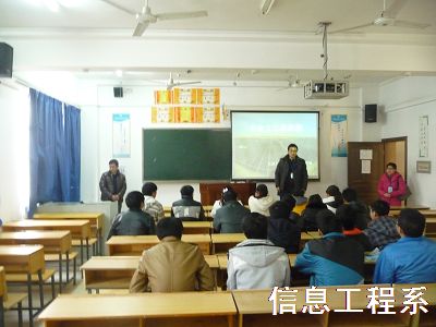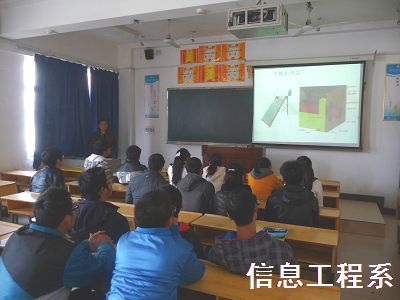 为了更好地实践企业文化进班级的各项工作,培养学生职业道德和职业素养,激发学习兴趣,营造工学结合的教学氛围,信息工程系特邀兴业太阳能光热部经理刘超,于2013年12月25日来我系开展光热技术专题讲座,系党总支书记、主任田拥军,光伏教研室教师向纳、郭清华,以及光热1131班全体学生参加讲座。