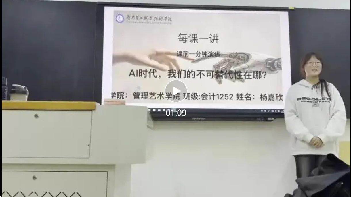 尊敬的老师,亲爱的同学们,大家好,我是管理艺术学院的杨嘉欣,今天我演讲的主题是“AI时代,我们的不可代替性在哪?”在AI时代,我们的不可替代性主要体现在独特的创造力与情感理解能力上。AI虽然能处理大量数据并执行复杂任务,但它缺乏真正的情感体验和人类特有的直觉。而我们能够通过共情能力理解他人的需求,在复杂情境中做出灵活判断,这种基于人类经验的智慧是机器难以复制的。我们的跨领域整合能力也是重要优势。AI通常专注于特定领域,而人类可以结合不同学科的知识和天马行空的想法,创造出跨界的解决方案。这种综合性的思维模式,加上对文化背景和社会价值的深刻理解,让我们在需要人文关怀的领域中保持不可替代性。我的演讲就到这里,谢谢大家!
