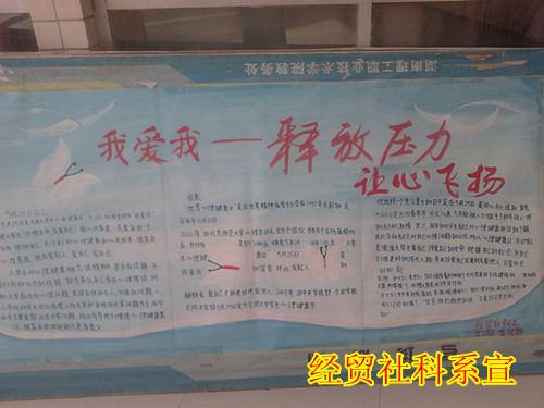 (通讯员 王杏)2012年5月25日,我院迎来了第八届大学生心理健康节,为此,经贸社科系开展了一系列旨在加强大学生心理健康的有益活动。