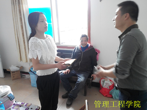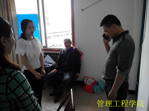 罗颂,管理工程学院计财1131班学生,从小与父亲和妹妹相依为命,其父于2014年4月被诊断为肾病综合症,2016年2月病情恶化,随时有生命危险,管理工程学院领导、老师得知后,在学院范围内发起了募捐活动,活动也得到了学校其他部门老师的支持,共筹得轻松筹平台及现金捐款共计8890元,5月3日,受管理工程学院党总支书记、院长谭境佳的委托,党总支副书记、副院长欧又瑞、计财1131班班主任雷霞老师等一行人前往罗颂及父亲的出租房,将捐款送到了他们手中。
