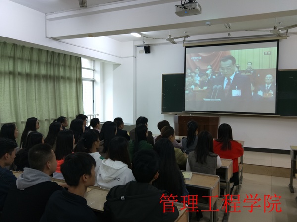 2017年10月18日8:50,明理楼南栋508教室,管理工程学院党总支副书记欧又瑞、副院长夏红雨以及管理工程学院部分党员师生等30多人早早等候在直播屏前,期待十九大盛会的网络直播。