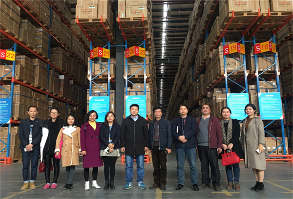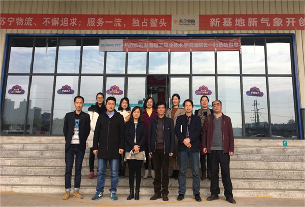 2017年11月24日上午,管理工程学院院长谭境佳率副院长夏红雨、工商管理专业负责人周星岚老师等一行8人赴苏宁长沙物流有限公司进行考察,由苏宁云商集团股份有限公司人力资源与行政中心总监冯花、物流管理总经理朱华军等陪同,考察物流仓储模式,并展开深入会谈,共探校企合作新机制,加强深度融合。
