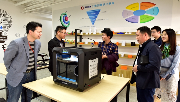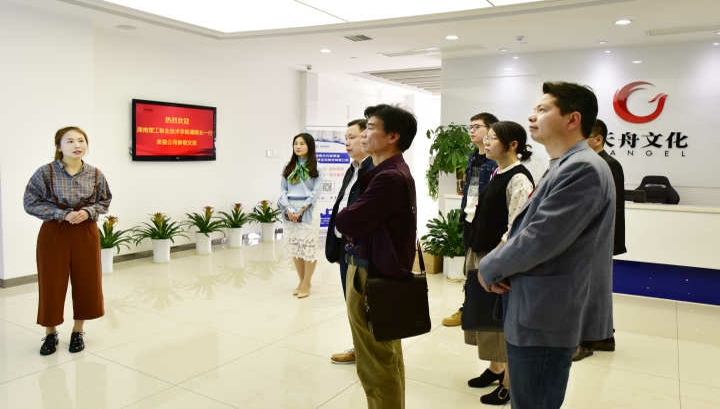 2018年4月17日,管理艺术学院在谭境佳院长带领下,夏红雨副院长、艺术设计专业负责人田灿以及周艳芳老师一行考察了天舟文化创意有限公司。在公司张建武副总裁的陪同下,校企双方进行了深入的交流,参观了公司总部及智能制造教学园区,为进一步的校企合作定了基础。