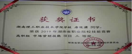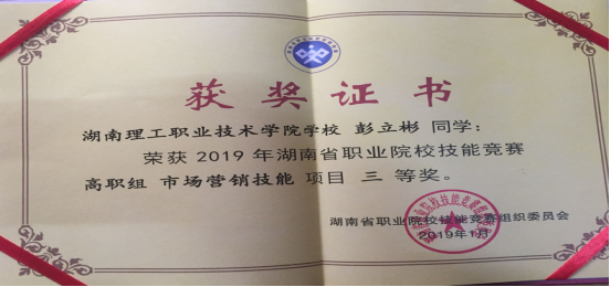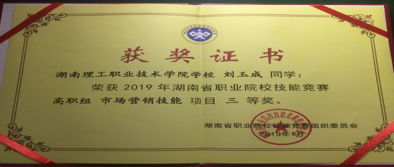 经过激烈角逐,管理艺术学院市场营销专业刘玉成、彭文彬、唐骏潇、陈钰四位学生在雷满丽、邓琦两位老师的指导下,荣获2019年湖南省职业院校技能竞赛“高职市场营销技能”项目三等奖。(文/夏红雨 编辑/兰姝嫱)