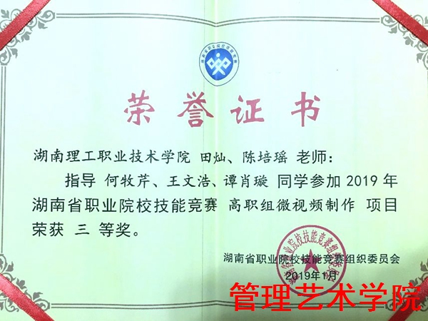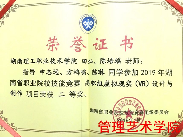 来自全省29所院校的286名选手齐聚湖南大众传媒职业技术学院参加2019湖南省职业院校技能竞赛。我校管理艺术学院由田灿和陈培瑶两位指导老师带队参加“虚拟现实(VR)设计与制作”及“微视频制作”两个项目的竞赛。